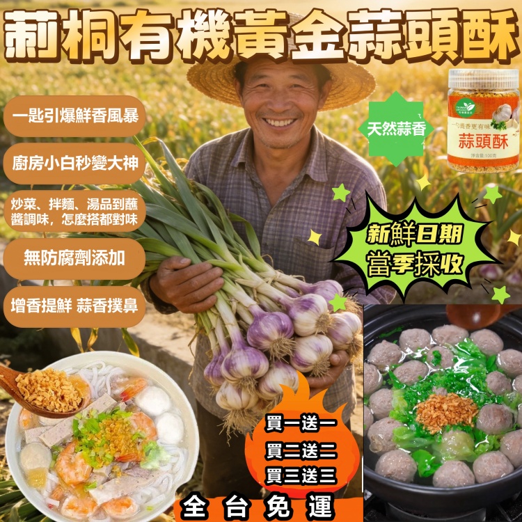 雲林莿桐|有機黃金蒜頭酥|天然蒜香・低溫烘焙・安心首選,從家常炒菜、拌麵、湯品到蘸醬調味,怎麼搭都對味!一勺搞定調味難題,廚房小白秒變大神